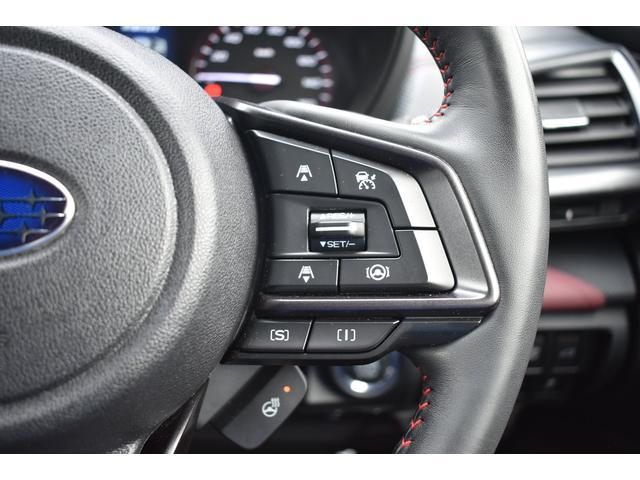 左:ステアリングオーディオコントロールスイッチ。オーディオの操作がお手元で可能です。右:全車速クルーズコントロールの操作スイッチで、アイサイトと連動し前方車両に追従走行できます。