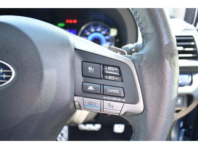 左:オーディオコントロールスイッチ。手元でオーディオ操作ができます。右:全車速クルーズコントロールの操作スイッチで、アイサイトと連動し前方車両に追従走行できます。
