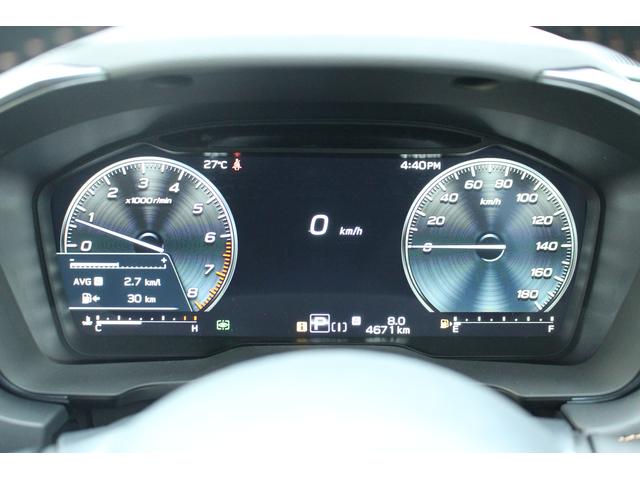 こちらはアイサイトの作動画面!前方車の認識や車線の認識を視覚化!現在の表示は停車中なのでアイサイトの作動状況はほとんど表示されていません