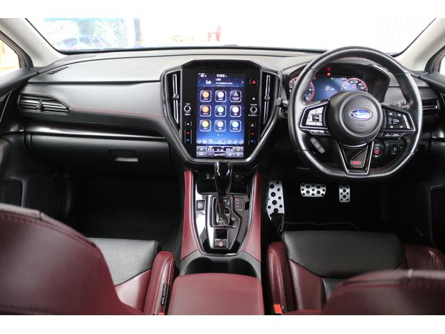 コンソールはピアノブラックパネルにボルドーレッドレザーを使用したスポーティなデザイン!CVTはSTIスポーツのハードな走りにも対応するトルク伝達効率の高い金属チェーン式CVTのリニアトロニックを採用!