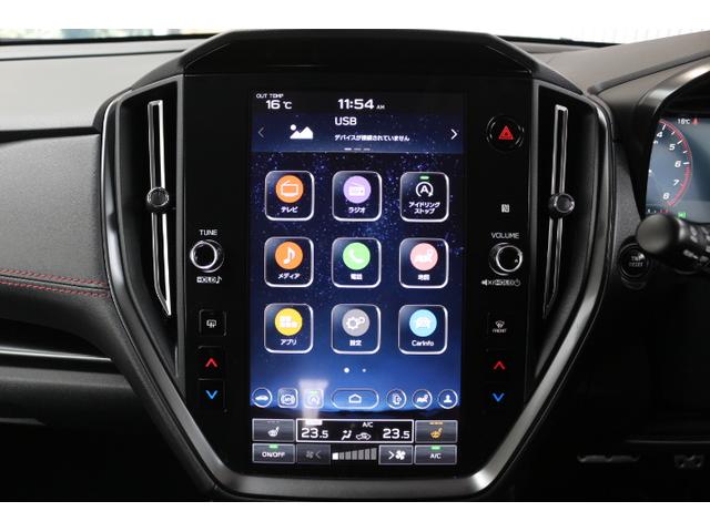 こちらはアイサイトの作動情報を大きく表示する画面です!停車中の撮影の為、ちょっと寂しい表示になっていますが走行中であれば前方車両認識や車線認識などが分かりやすく表示されます