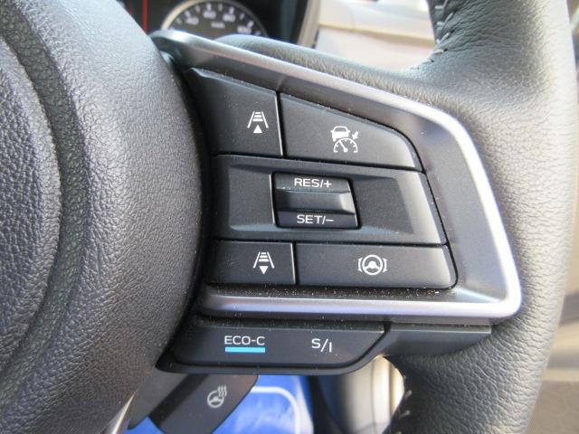 ステアリング右手側にはアイサイトの追従機能設定やSIドライブの操作スイッチが内蔵されています 高速道路など走行中に手を離さず操作できるように安全運転につながる設計になっています