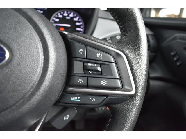 ステアリング右側に装備しているアイサイト・追尾スイッチ。こちらのスイッチにて高速走行時のアイサイト追尾巡航のON・OFFを行います。