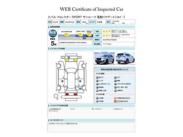 第三者機関による車両評価証です、ご検討の際の参考にして下さい※検査日現在の車両状態を示したものです、厳正な検査をしてもらっていますが、すべての傷・凹等の記載を保証するものではありません、ご了承ください
