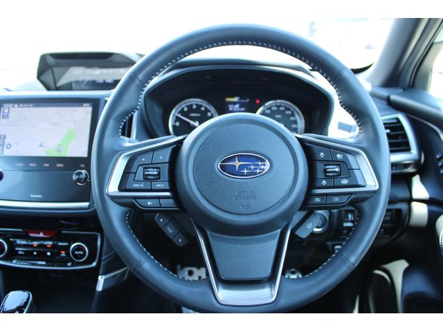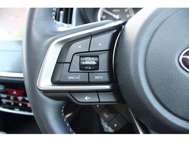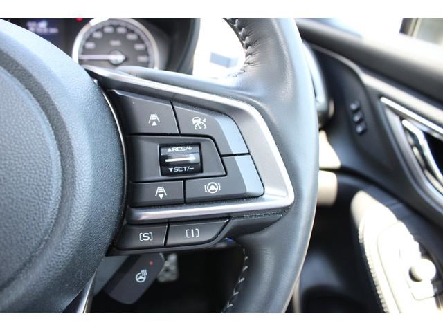 ステアリングスポーク右側には「追従クルーズコントロールスイッチ」、スバルのシステムは停止から高速域まで前車を追従できます、高速巡行だけでなく渋滞時も使えて便利です、レーンキープ機能も付いています
