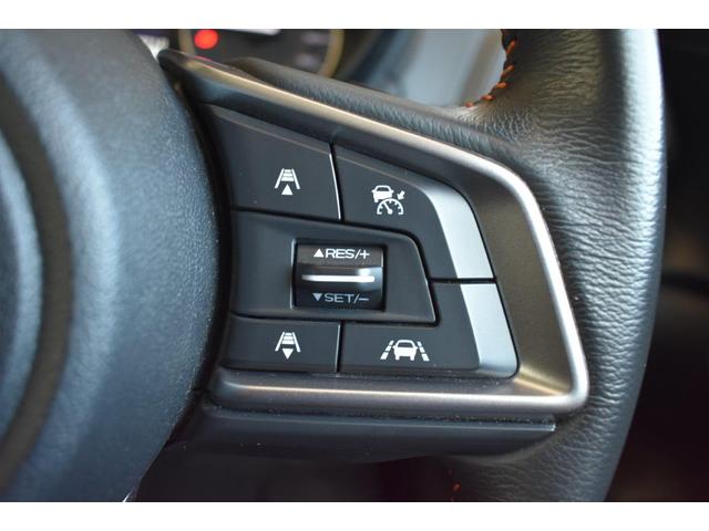 ステアリング右側に装備しているアイサイト・追尾スイッチ。こちらのスイッチにて高速走行時のアイサイト追尾巡航のON・OFFを行います。