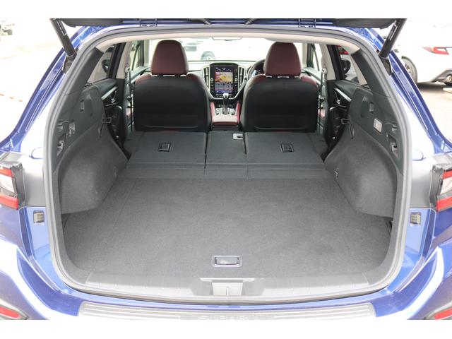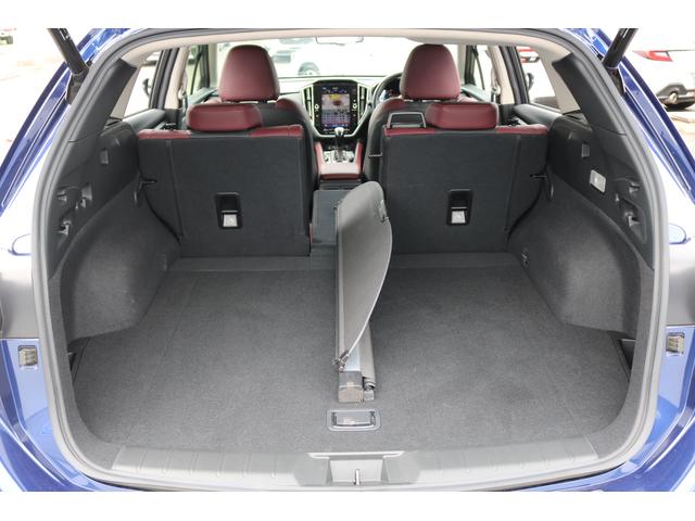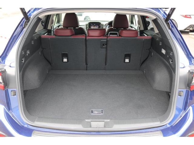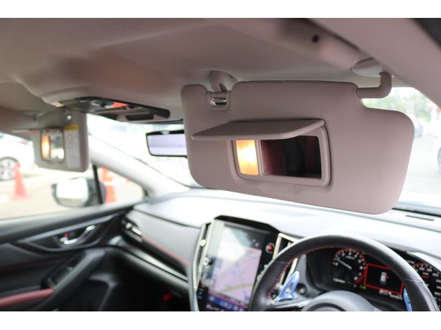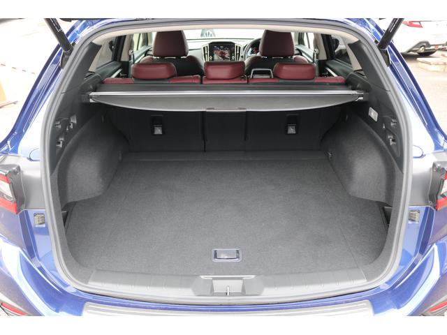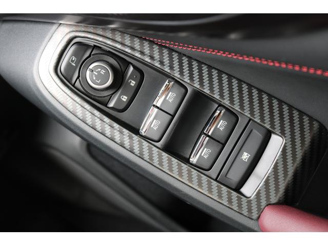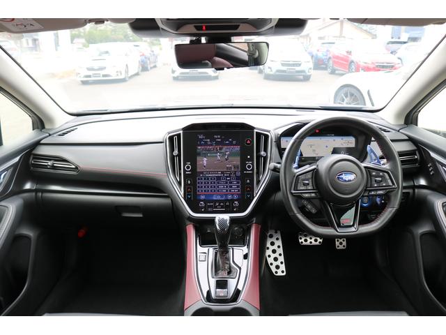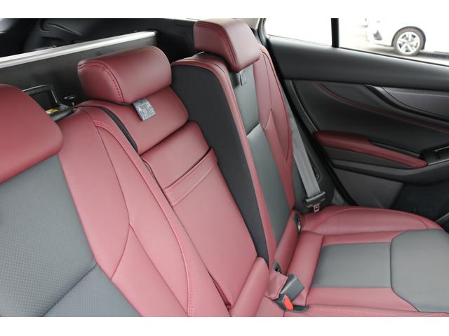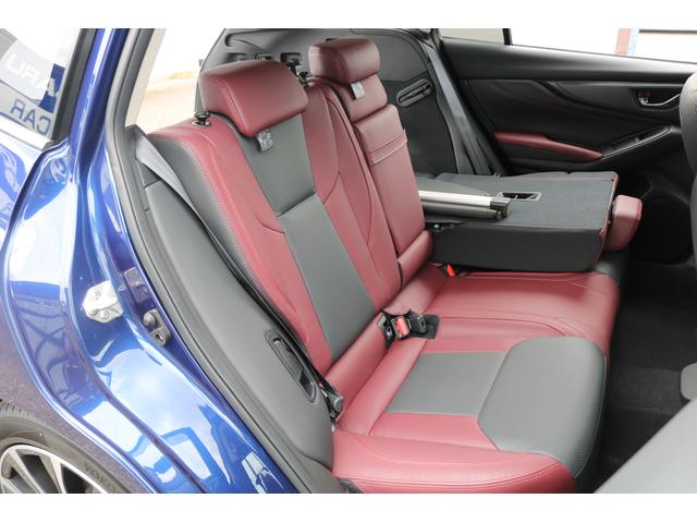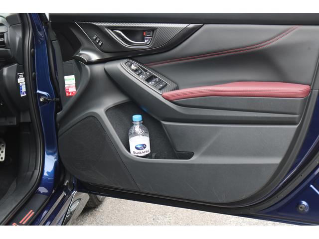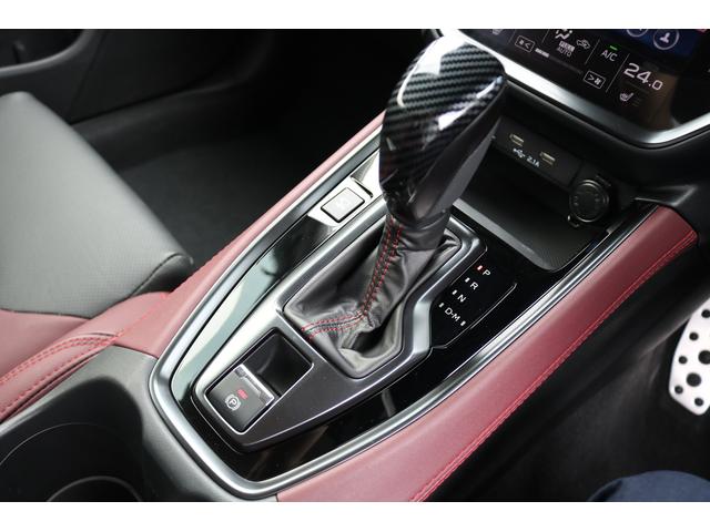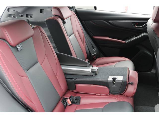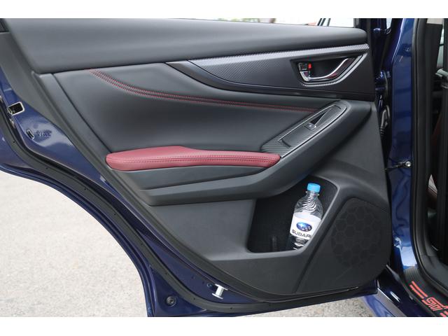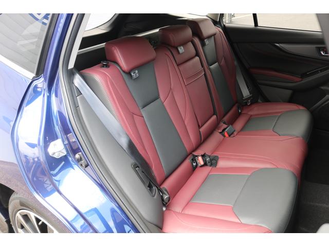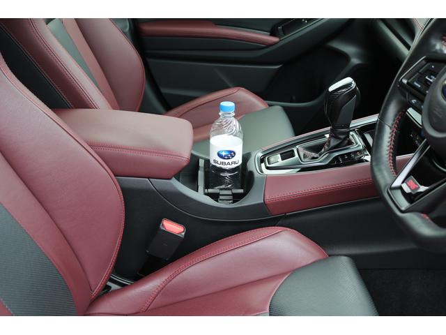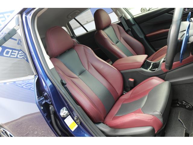 ボルドーカラーのSTI専用シートはロングドライブも快適に過ごせるシート。