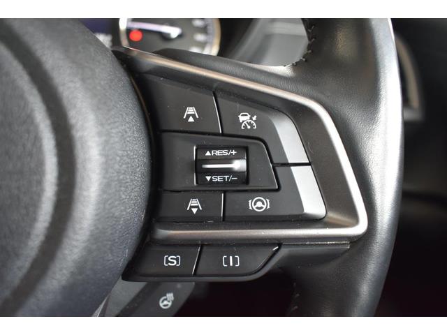 ステアリング右側に装備しているアイサイト・追尾スイッチ。こちらのスイッチにて高速走行時のアイサイト追尾巡航のON・OFFを行います。