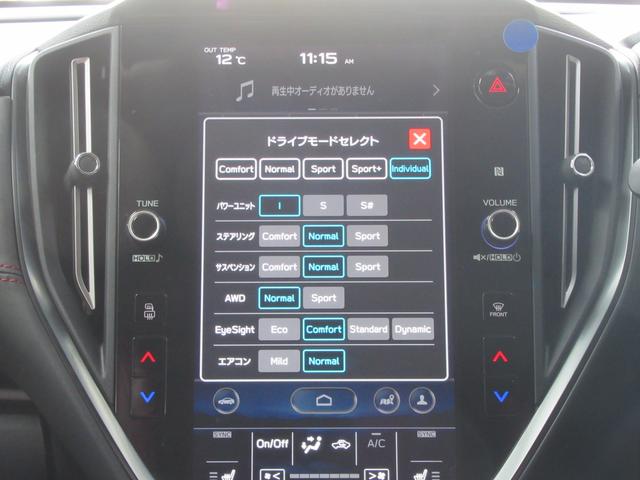ドライブモードセレクト設定画面。ドライブモードセレクトとは、走行特性を愉しめる走りから、乗り心地を重視した走りまで、足回りをはじめとした各デバイスの設定を自由にカスタマイズできる革新的なシステムです。