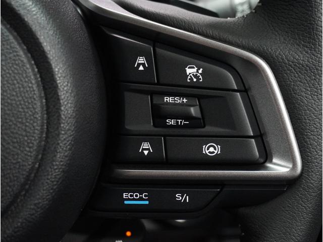 アイサイトの運転支援機能、クルーズコントロールのボタンです。前の車についていく機能や、一定の速さで走行する機能、車線をはみ出さない機能等有ります。