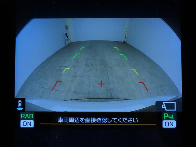 ■リヤビューカメラの映像です。ステアリング連動ガイドラインが、後退時の予想進路を表示し、運転のサポートを致します。