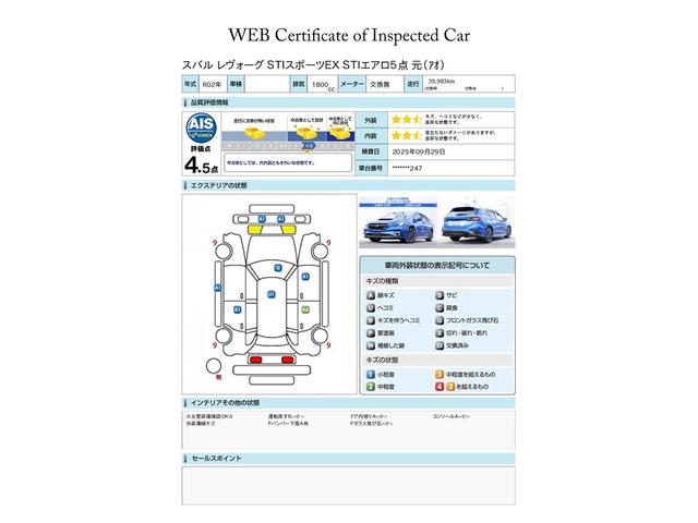第三者機関による車両評価証です、ご検討の際の参考にして下さい※厳正な検査をしてもらっていますが、すべての傷・凹等の記載を保証するものではありません、小さい傷など気になるかたは実車での確認がおすすめです
