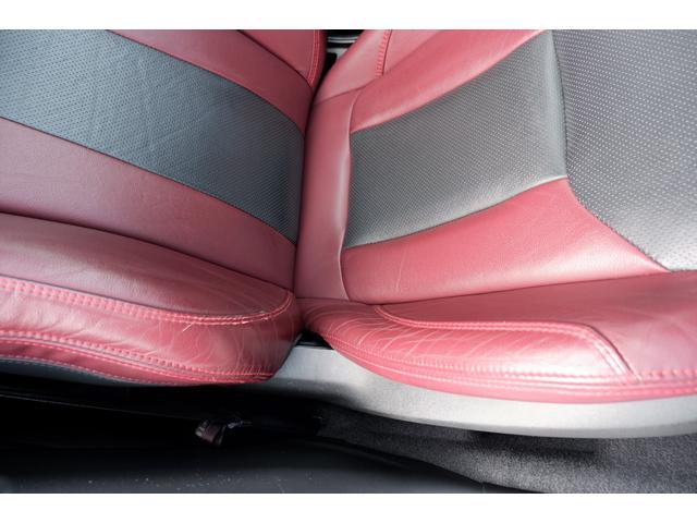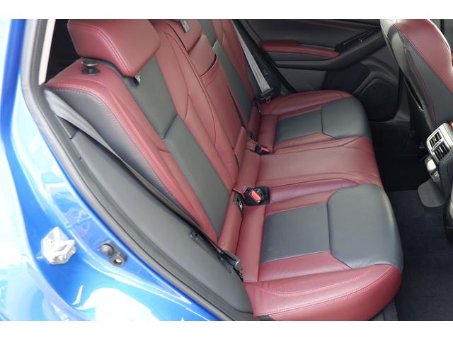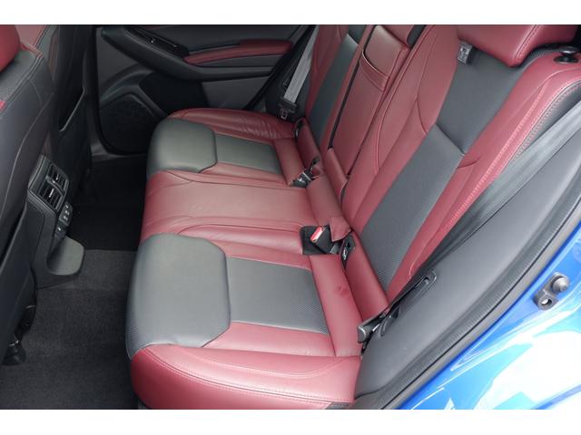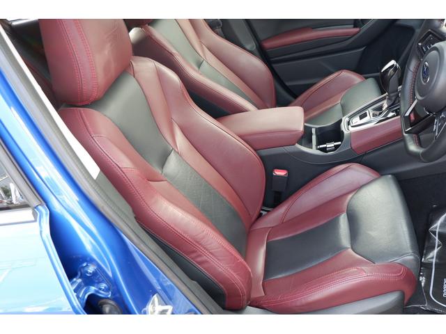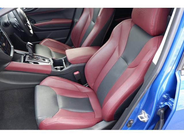 運転席シートの写真、高級感あるSTIスポーツ専用のボルドー&ブラックの本革シートです、当社で試乗車・代車として使用していた車なので内装の状態も良いと思います