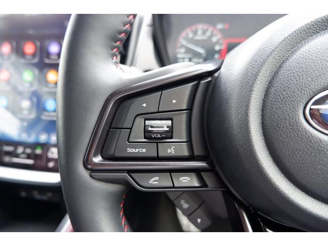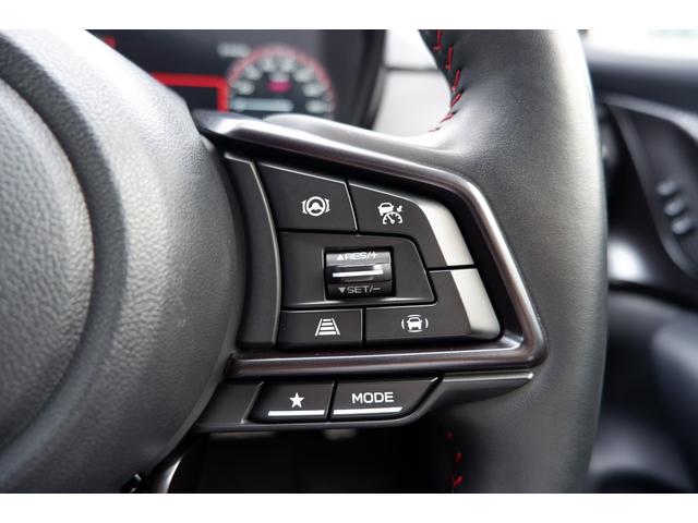 ステアリングスポーク右側には「追従クルーズコントロールスイッチ」、スバルのシステムは停止から高速域まで前車を追従できます、高速巡行だけでなく渋滞時も使えて便利です、レーンキープ機能も付いています