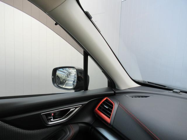 安全性能に強いこだわりを持つスバル車は、スポーティな外観デザインながらピラー(柱)形状やドアミラーの位置を工夫し、全方位での死角を低減しています