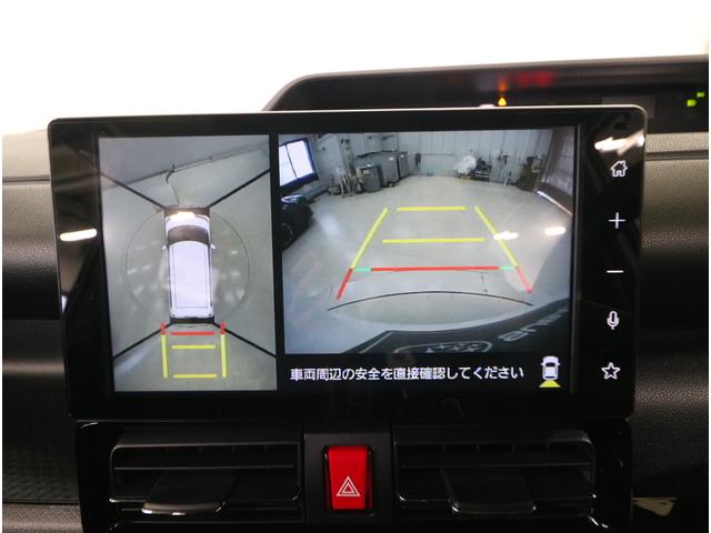 車両の前後左右に設置されたカメラの映像を合成し、車を真上から見下ろしたような映像を9インチディスプレイに表示。狭い場所での駐車や、見通しの悪い交差点での安全確認をサポートします。