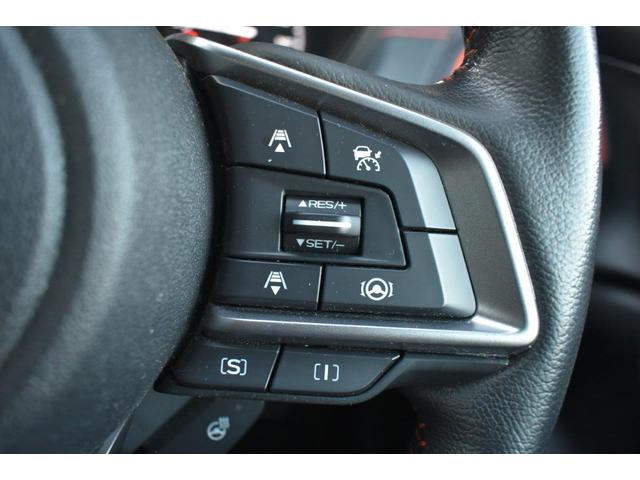 ステアリング右側に装備しているアイサイト・追尾スイッチ。こちらのスイッチにて高速走行時のアイサイト追尾巡航のON・OFFを行います。