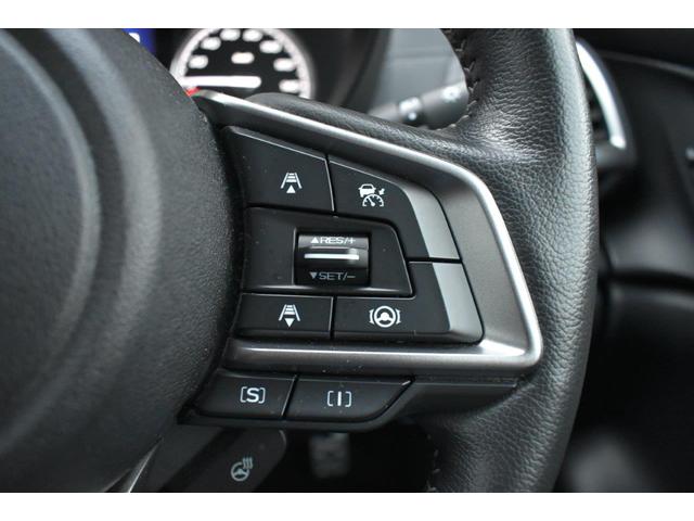 ステアリング右側に装備しているアイサイト・追尾スイッチ。こちらのスイッチにて高速走行時のアイサイト追尾巡航のON・OFFを行います。