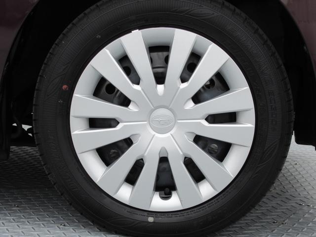 純正14インチフルホイールキャップ付きスチールホイール。 タイヤサイズは155/65R14。