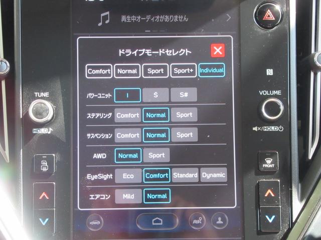 ドライブモードセレクト設定画面。ドライブモードセレクトとは、走行特性を愉しめる走りから、乗り心地を重視した走りまで、足回りをはじめとした各デバイスの設定を自由にカスタマイズできる革新的なシステムです。