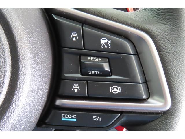 アイサイトの運転支援機能、クルーズコントロールのボタンです。前の車についていく機能や、一定の速さで走行する機能、車線をはみ出さない機能等有ります。