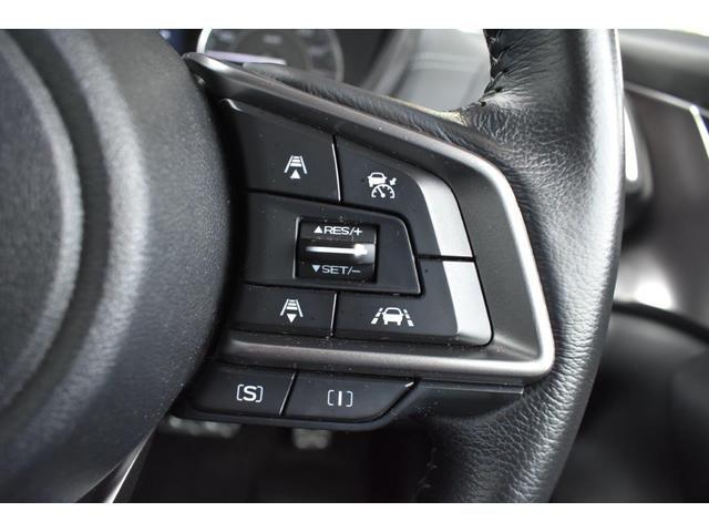 ステアリング右側に装備しているアイサイト・追尾スイッチ。こちらのスイッチにて高速走行時のアイサイト追尾巡航のON・OFFを行います。