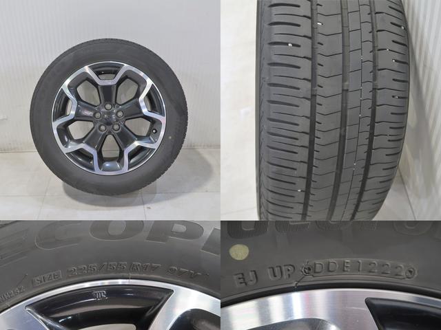 スバルの走りを足元から支える純正17インチ・アルミホイールと2022年製夏タイヤ(225/55R17)の積込あります。