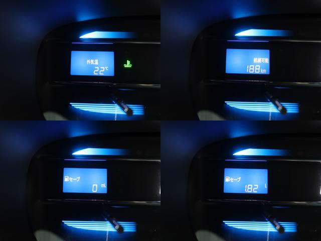 右側ディスプレイには走行距離をはじめ、外気温や航続可能距離や平均燃費、アイドリングストップ時間などを切り替えて表示いたします。