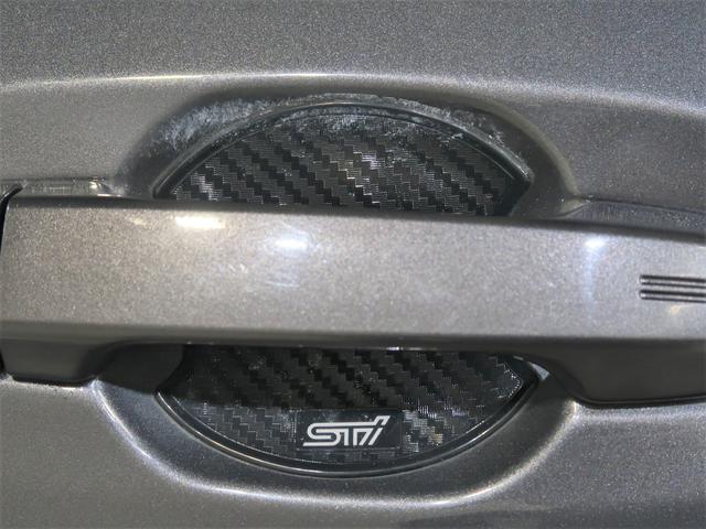 ドア開閉時に付く爪のひっかき傷、嫌ですよね。ドアハンドルプロテクターで防御します。STIロゴとカーボン調デザインで見た目もGood!