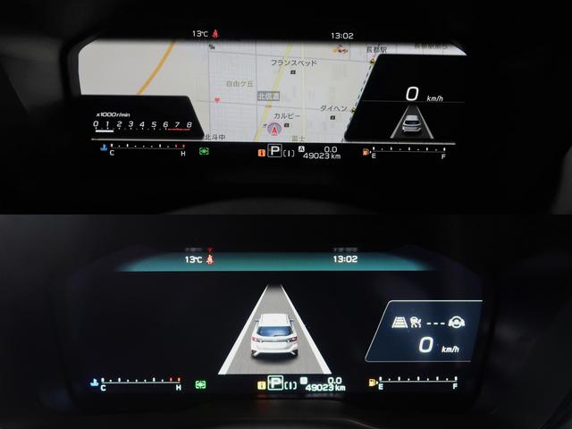 シーンや気分に応じて、ノーマル画面、ナビ情報を表示するの地図画面、運転支援の状態などを表示するアイサイト画面の3つのモードで自由に切り替え可能です。