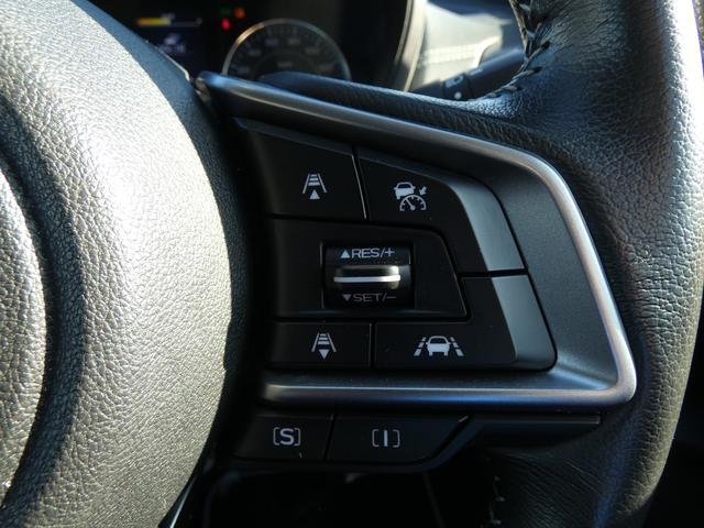 アイサイトの操作スイッチ。クルーズコントロールと連動し、前方車両についていくこともできます。