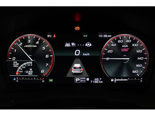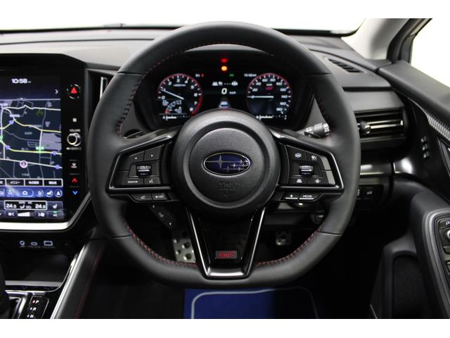 手触りがよく握りやすい本革巻きステアリングホイールは6時位置がストレート形状のDシェイプタイプを採用。STIロゴマーク入り。