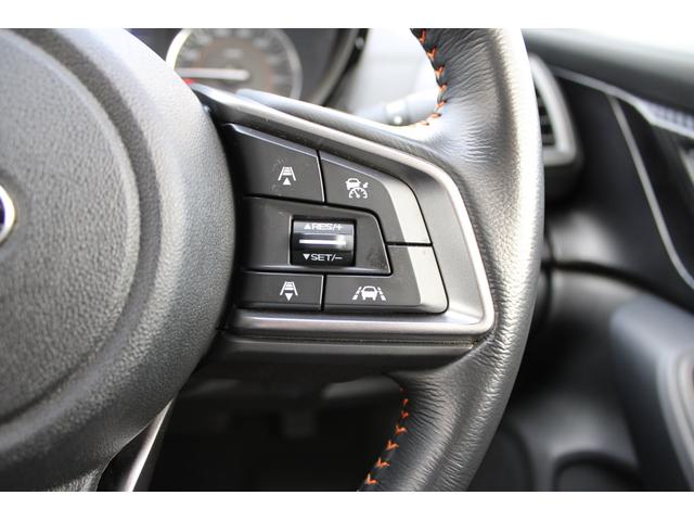 ステアリングスポーク右側には「追従クルーズコントロールスイッチ」、スバルのシステムは停止から高速域まで前車を追従できます、高速巡行だけでなく渋滞時も使えて便利です、レーンキープ機能も付いています