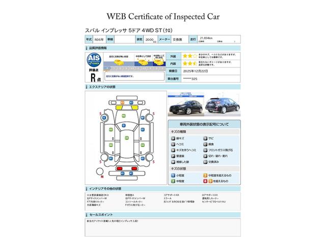 第三者機関による車両検査証、ご検討の際の参考にしてください※すべての傷・凹みなどの記載を保証するものではありません、内外装の状態が気になるかたは実車での確認がおすすめです