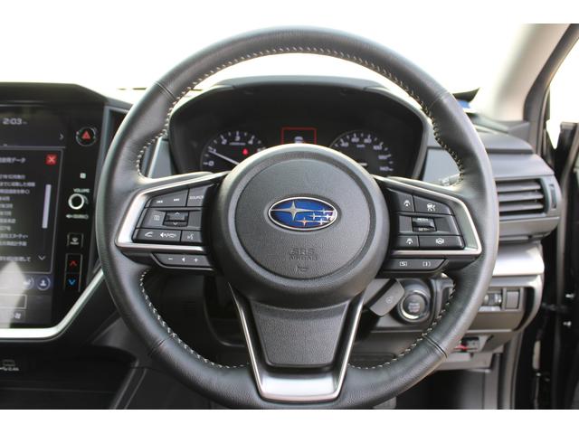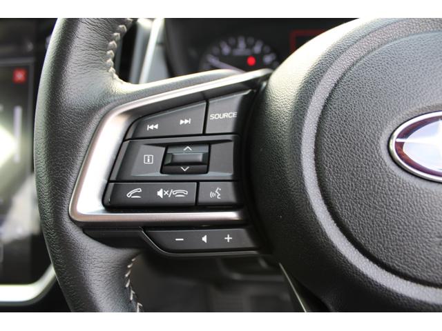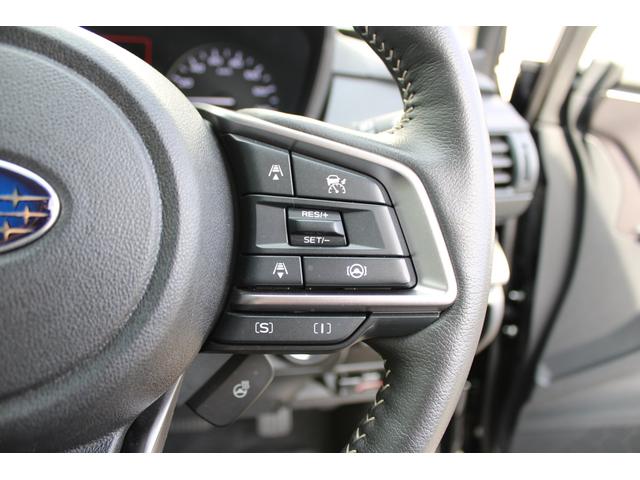 ステアリングスポーク右側には「追従クルーズコントロールスイッチ」、スバルのシステムは停止から高速域まで前車を追従できます、高速巡行だけでなく渋滞時も使えて便利です、レーンキープ機能も付いています