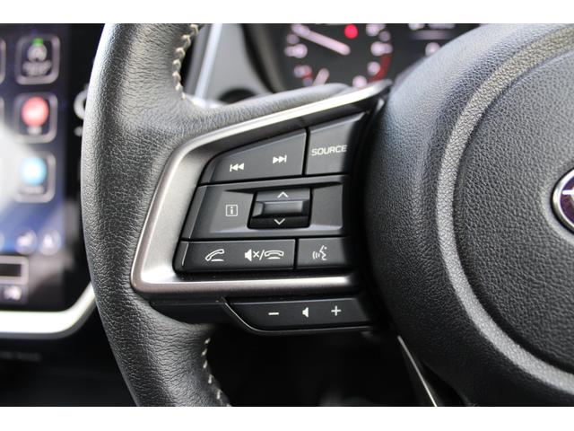ステアリングスポーク右側には「追従クルーズコントロールスイッチ」、スバルのシステムは停止から高速域まで前車を追従できます、高速巡行だけでなく渋滞時も使えて便利です、レーンキープ機能も付いています