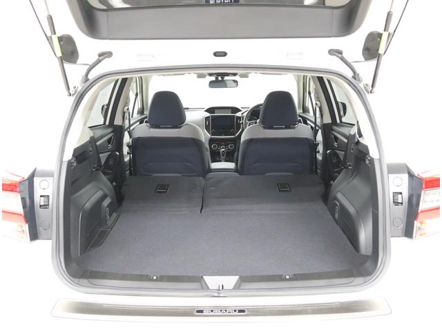 リヤシート左右を倒した状態です。広々としたワンフロアに出来るので、大きな荷物や、長さのある物は斜めにして頂いたりと、工夫次第で様々な荷物を積む事が可能です。