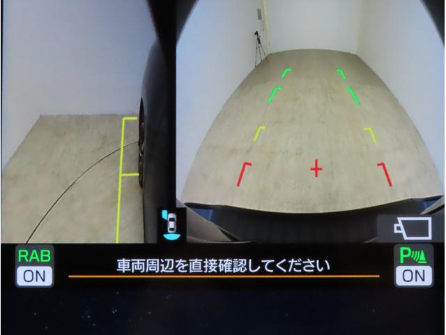 ■リヤビューカメラの映像です。ステアリング連動ガイドラインが、後退時の予想進路を表示し、運転のサポートを致します。