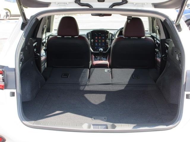 後部座席背もたれを、倒せば長尺物も積み込み可能です。釣りやゴルフなど幅広くお使いいただけます。また、長距離ドライブでの仮眠や車中泊も出来、疲労軽減に活躍してくれます。