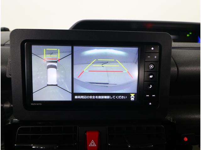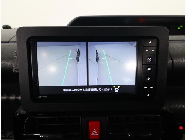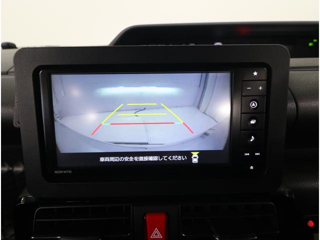リヤビューカメラの映像です。ステアリング連動ガイドラインが、後退時の予想進路を表示し、運転のサポートを致します。