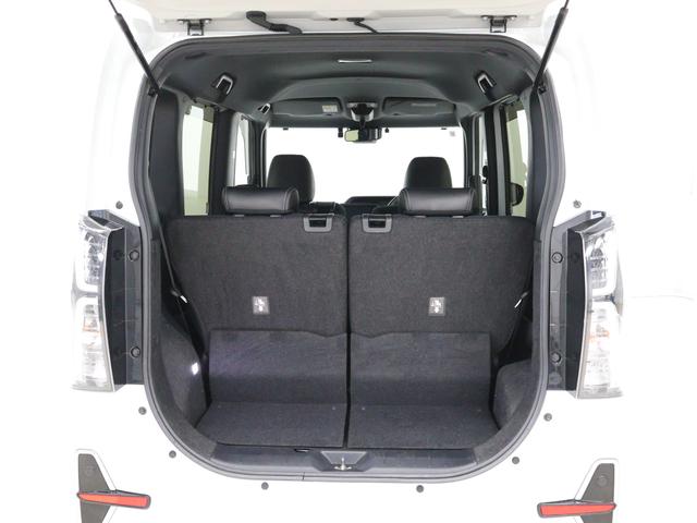 リヤシート左右を倒した状態です。広々としたワンフロアに出来るので、大きな荷物や、長さのある物は斜めにして頂いたりと、工夫次第で様々な荷物を積む事が可能です。