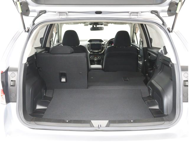 リヤシートを左右倒すと、広々としたワンフロア空間が完成。大きな荷物や長いアイテムも斜めに積むなど工夫次第で様々な荷物の収納が可能です。