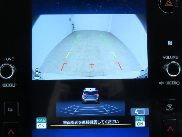 ■リヤビューカメラの映像です。ステアリング連動ガイドラインが、後退時の予想進路を表示し、運転のサポートを致します。