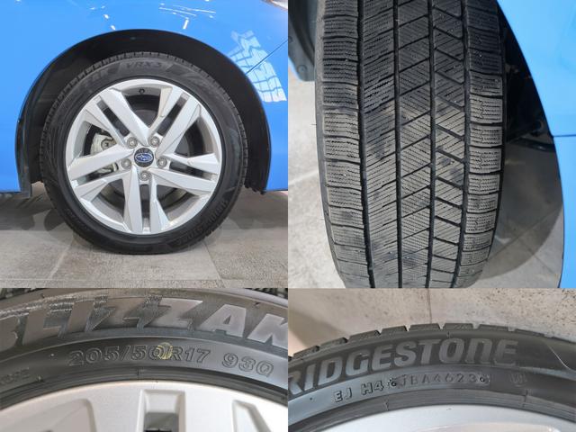 スバルの走りを足元から支える純正17インチ・アルミホイールと2023年制スタッドレスタイヤ(205/50R17)を装着しています。