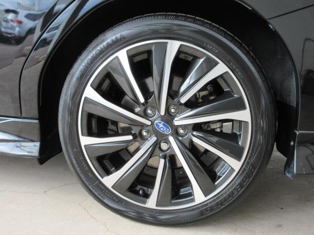 右前 STI18インチアルミホイール タイヤサイズは、225/45R18です。「*ホイールロックナットは展示用です」