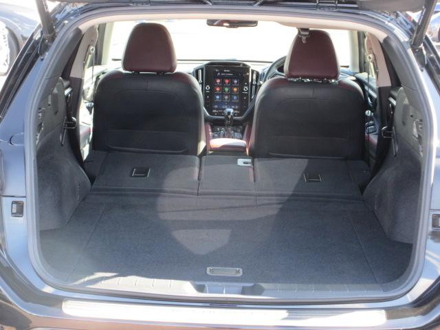 後部座席背もたれを、倒せば長尺物も積み込み可能です。釣りやゴルフなど幅広くお使いいただけます。また、長距離ドライブでの仮眠や車中泊も出来、疲労軽減に活躍してくれます。