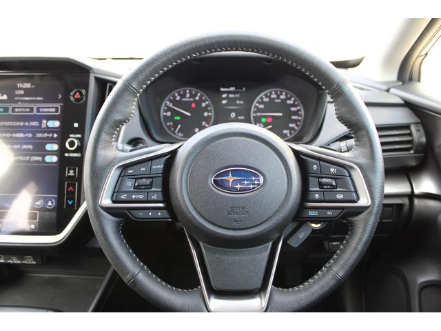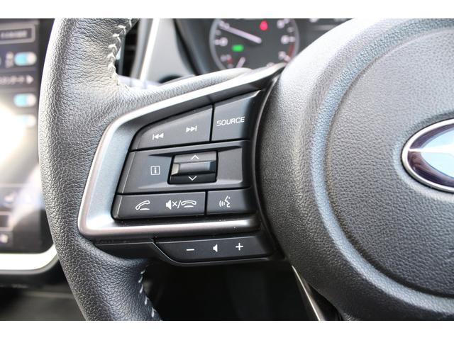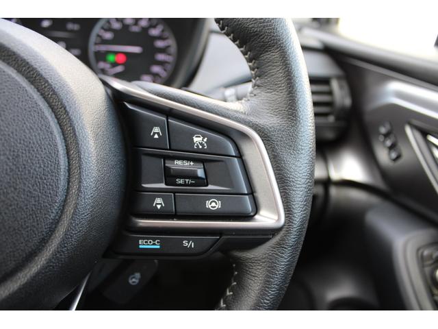 ステアリングスポーク右側には「追従クルーズコントロール」スイッチ、スバルのシステムは停止から高速域まで前車を追従できます、高速巡行だけでなく渋滞時も使えて便利です、レーンキープ機能も付いています