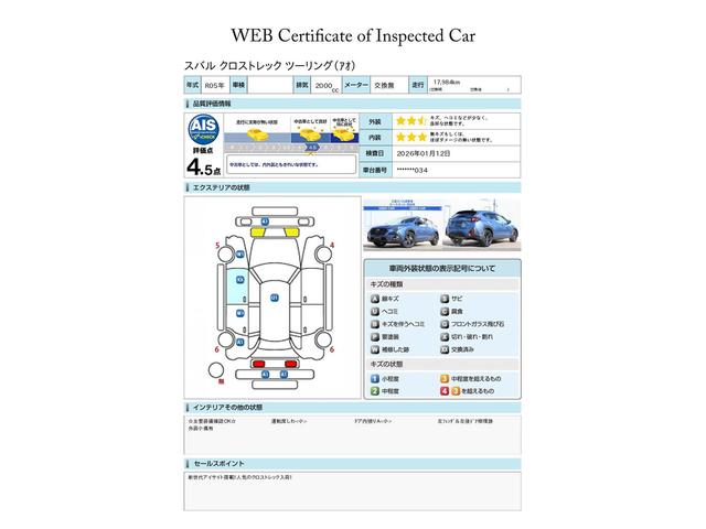 第三者機関による車両検査証、ご検討の際の参考にしてください※すべての傷・凹みなどの記載を保証するものではありません、内外装の状態が気になるかたは実車での確認がおすすめです