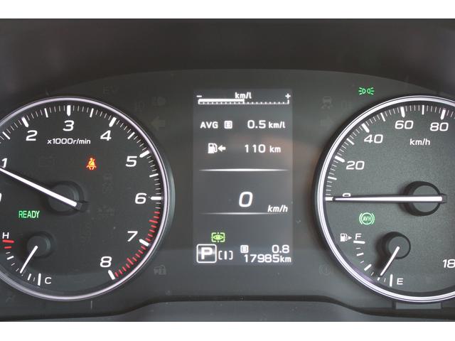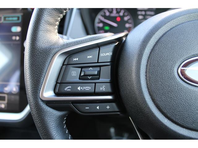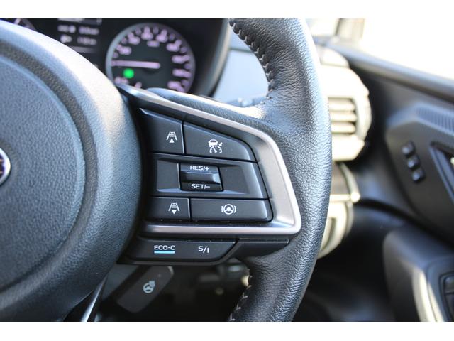 ステアリングスポーク右側には「追従クルーズコントロール」スイッチ、スバルのシステムは停止から高速域まで前車を追従できます、高速巡行だけでなく渋滞時も使えて便利です、レーンキープ機能も付いています