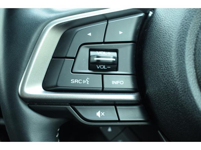 左:ステアリングオーディオコントロールスイッチ。オーディオの操作がお手元で可能です。右:全車速クルーズコントロールの操作スイッチで、アイサイトと連動し前方車両に追従走行できます。